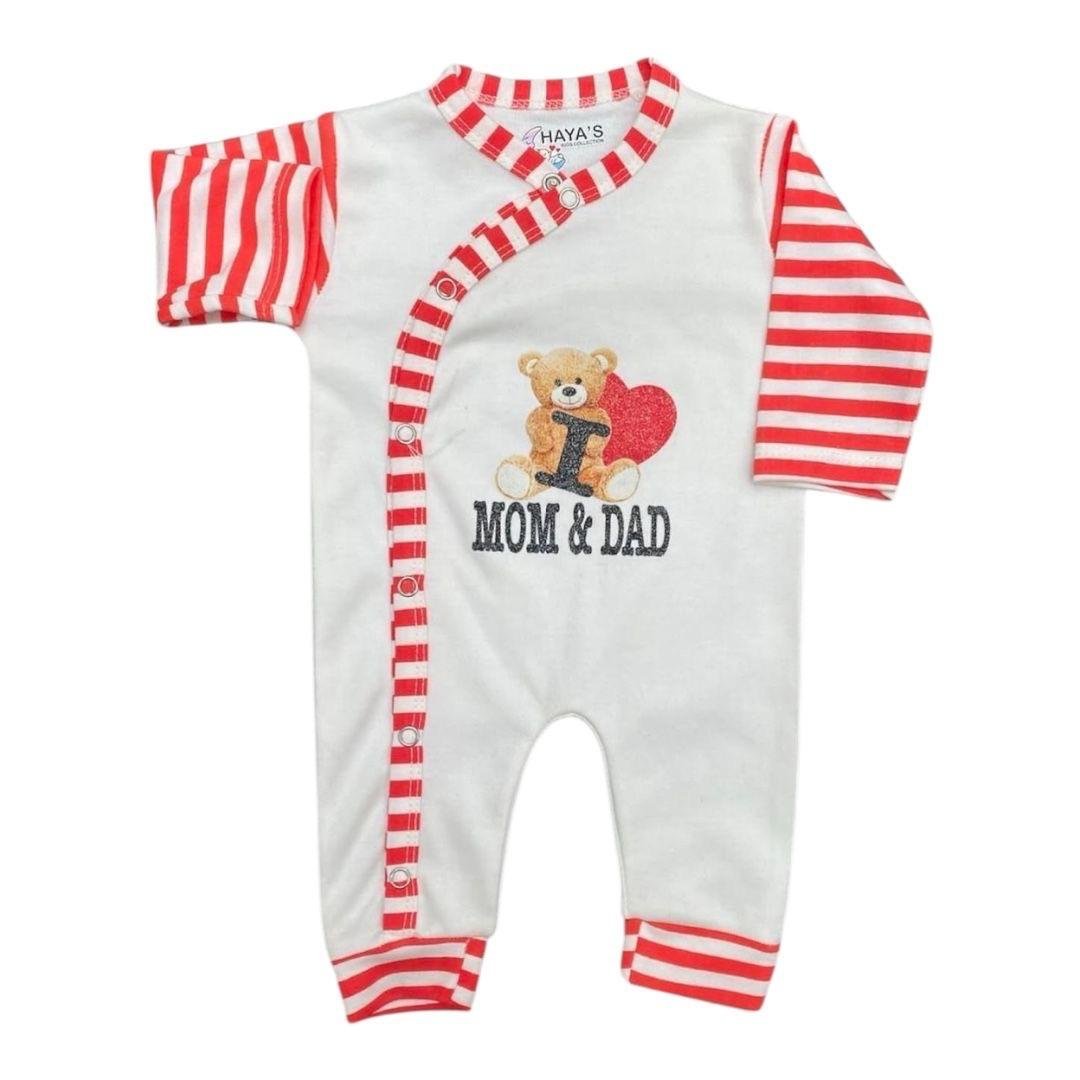 3 infant rompers in red blue & yellow colours. Pure breathable summer cotton fabric.