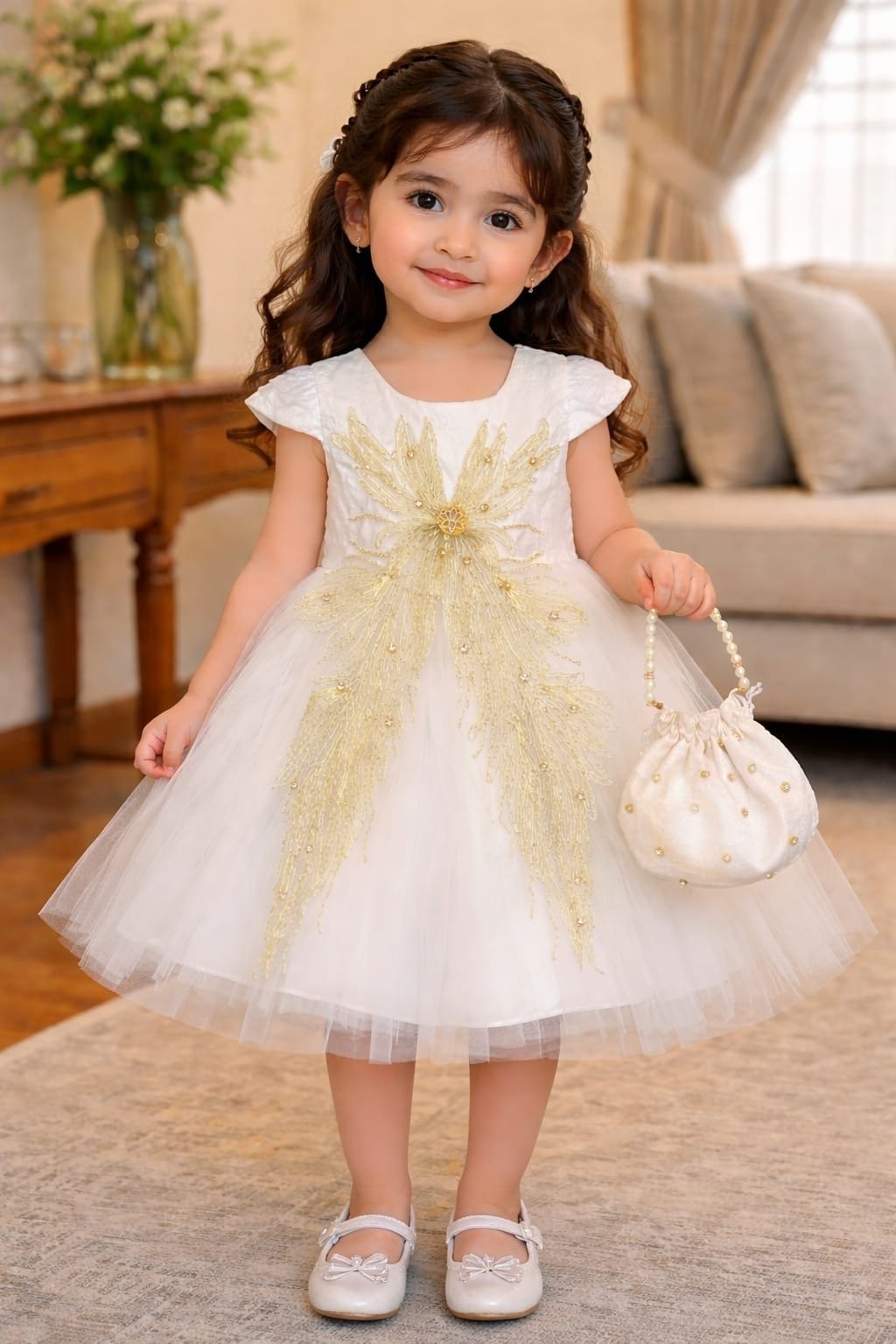 White & Gold Butterfly FrockWhite & Gold Butterfly Frock